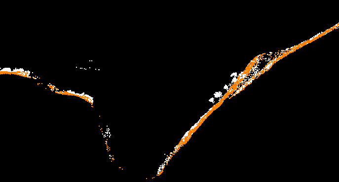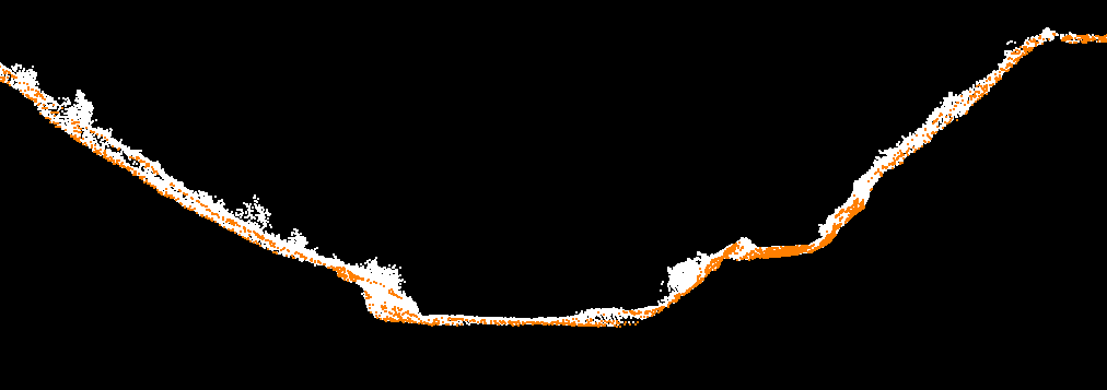 分类后剖面图1(黄色为地面点、白色为其他点)