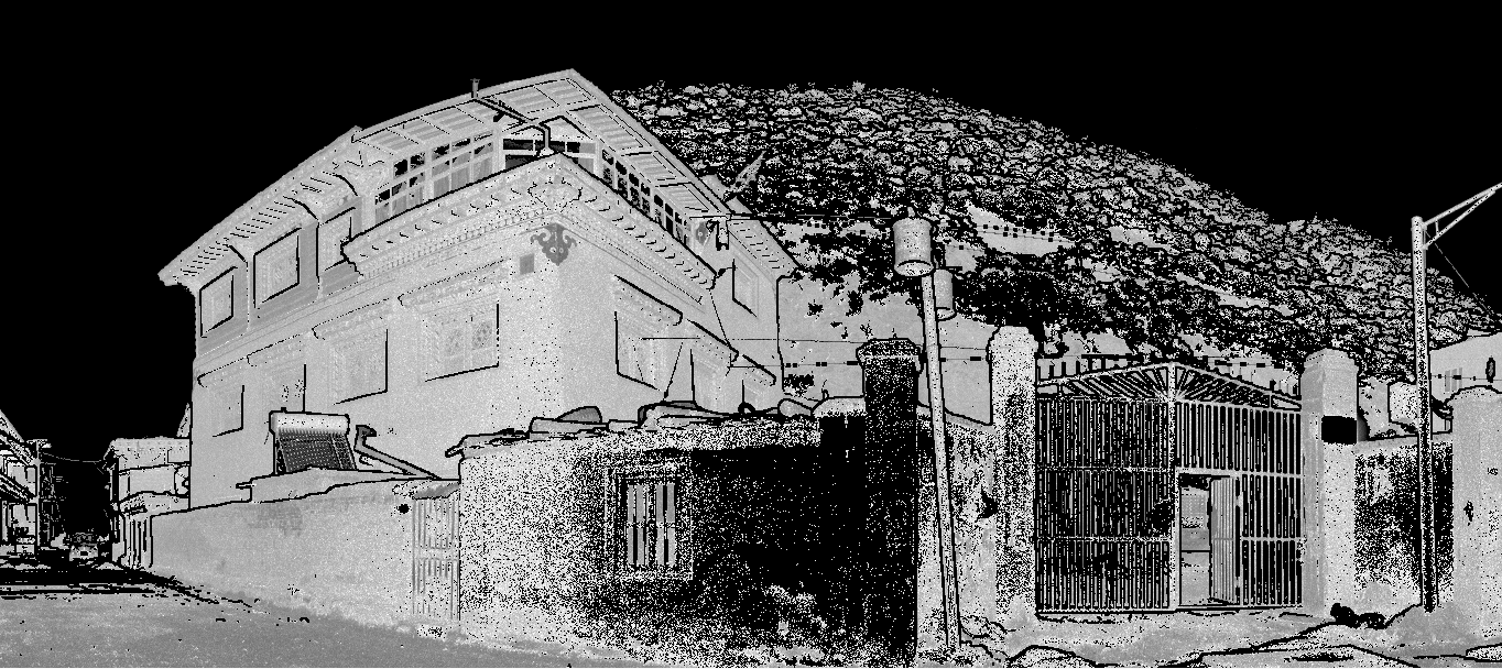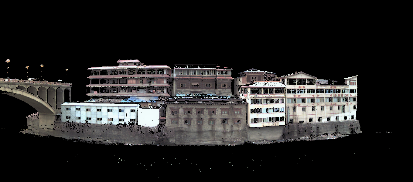 对所需扫描作业的街道进行作业,现场参与扫描作业人员1人,外业数据采集时间为5天,获取了所需要的街道立面的点云数据(新龙县平均海拔在3500米左右)。