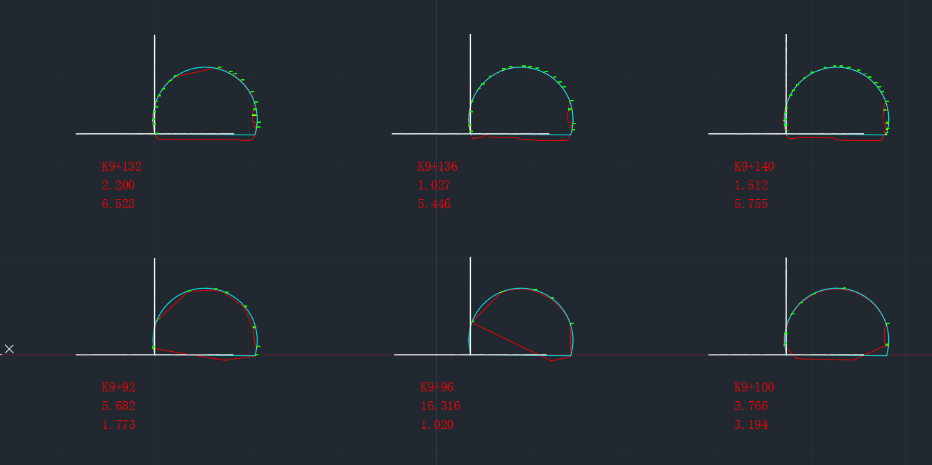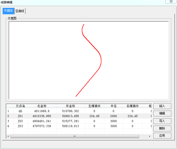 对导入的数据进行检查后,对隧道超欠挖分析所用到的设计路线(平曲线、竖曲线)、设计断面等数据(有客户提供隧道的设计参数)进行输入转换,如下: