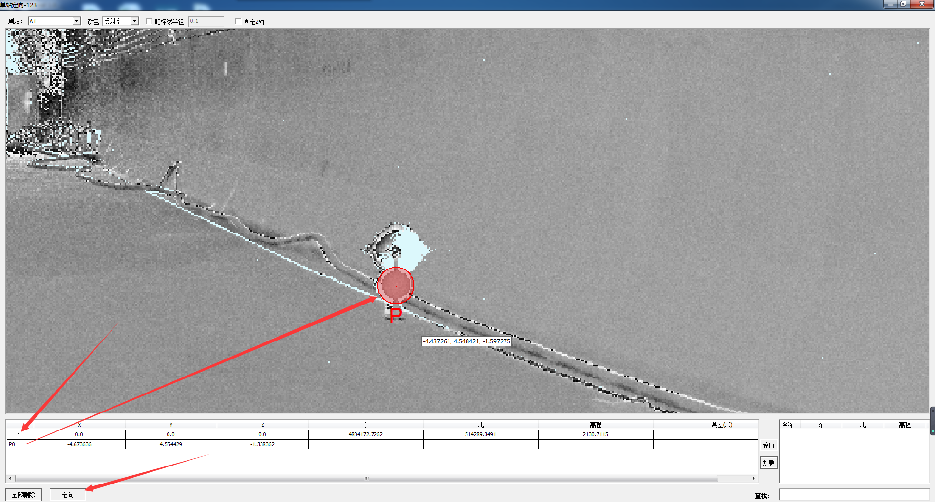 对导入的点云进行定向(根据现场全站仪获取的标靶球和仪器中心的地理坐标进行定向