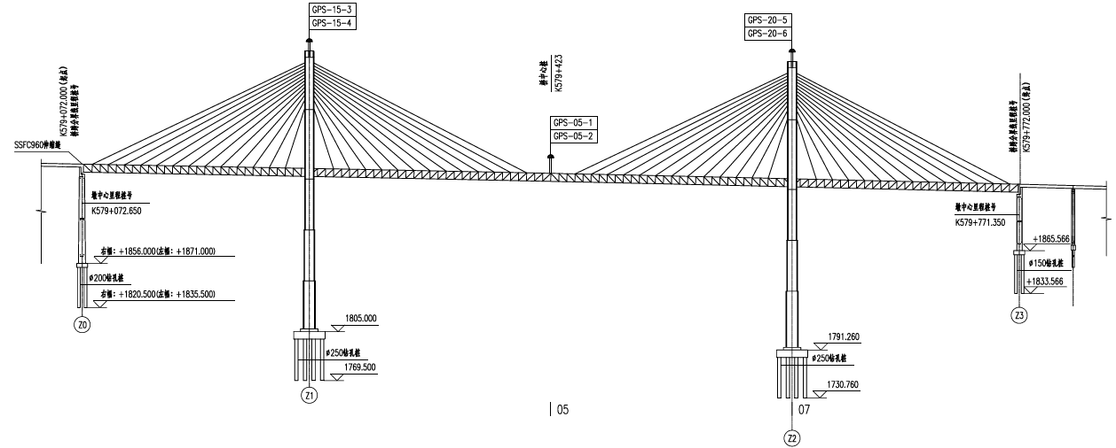 桥梁监测数据包括桥面线性与挠度,高塔柱摆动、墩台沉降、主梁横向、水平位移等。