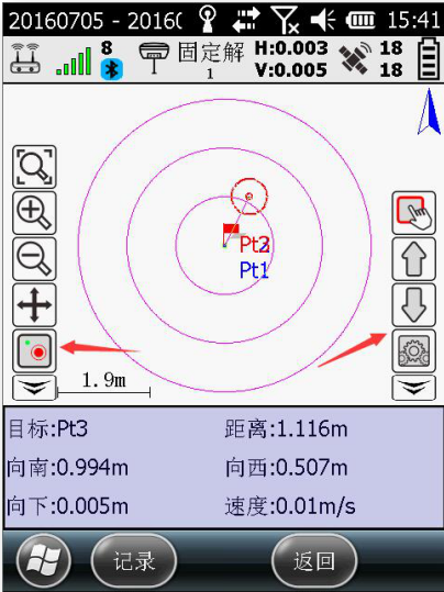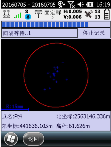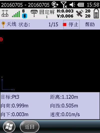 对中杆放在待测点上,摇晃对中杆,采集够所需要数据,即可自动完成坐标校正,得到地面点的坐标。