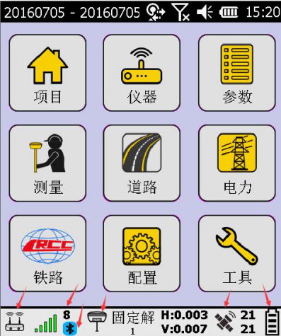 6、电池电量图标,点按可查询手簿及主机电量信息。