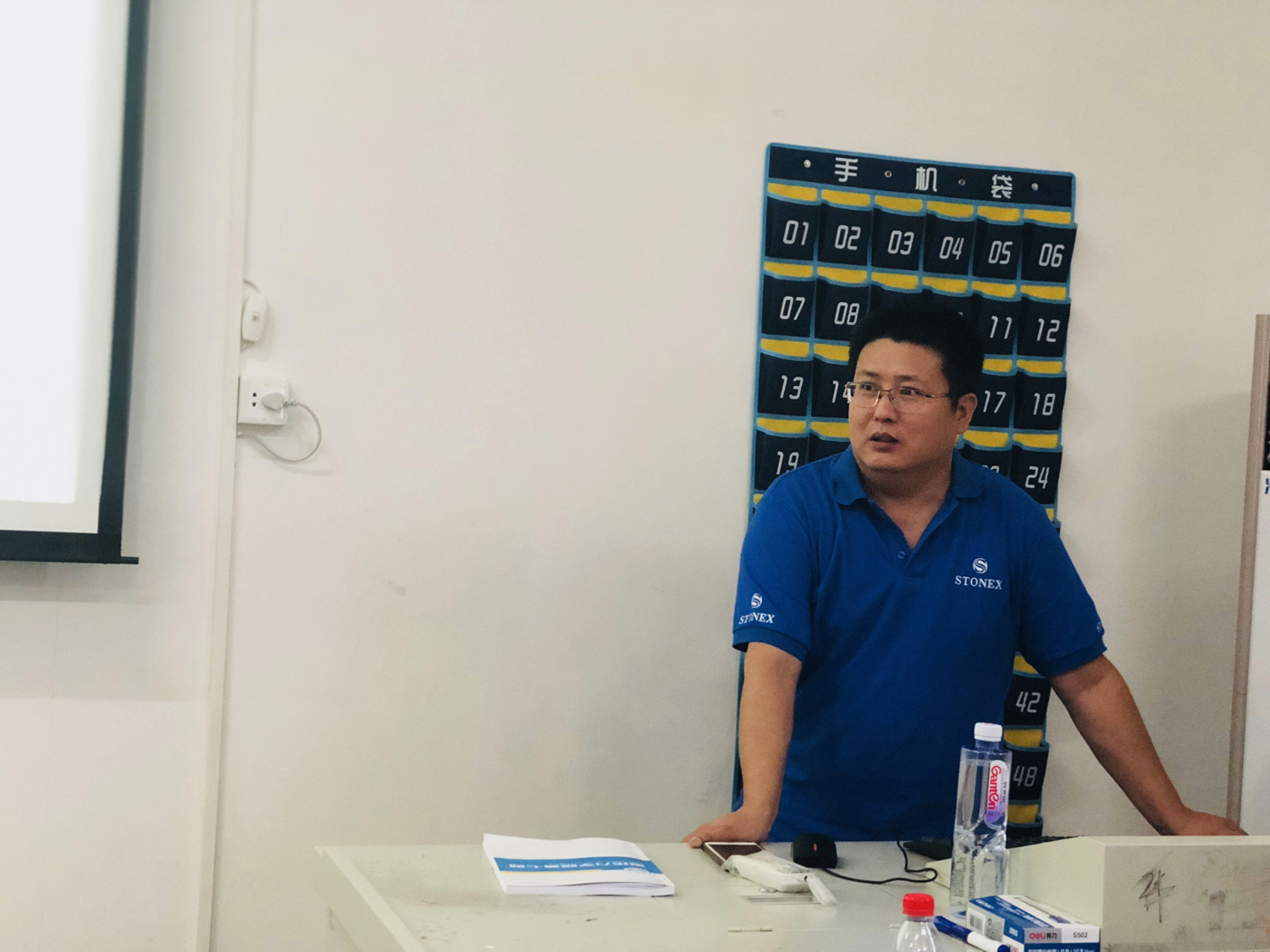 思拓力副总经理孙佩垚为学员们介绍测绘仪器行业现状,思拓力品牌与产品