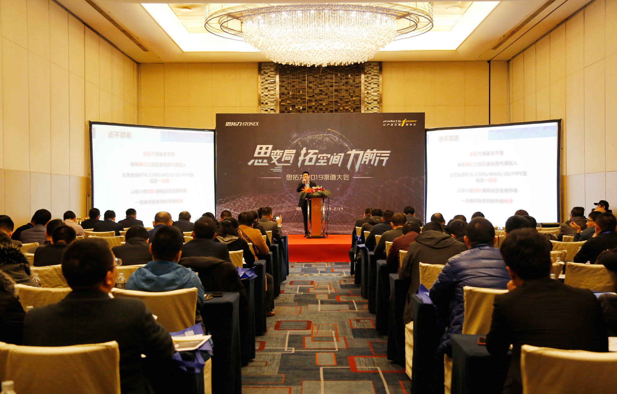 在科创剧院,合众思壮董事长郭信平对思拓力合作伙伴的到来表示衷心的欢迎与感谢,肯定了思拓力作为集团测量主品牌的定位,及对集团RTK业务跃居中国市场前三强的突出贡献,并赞誉了思拓力始终坚持“以产品为第一竞争力”的品牌理念。