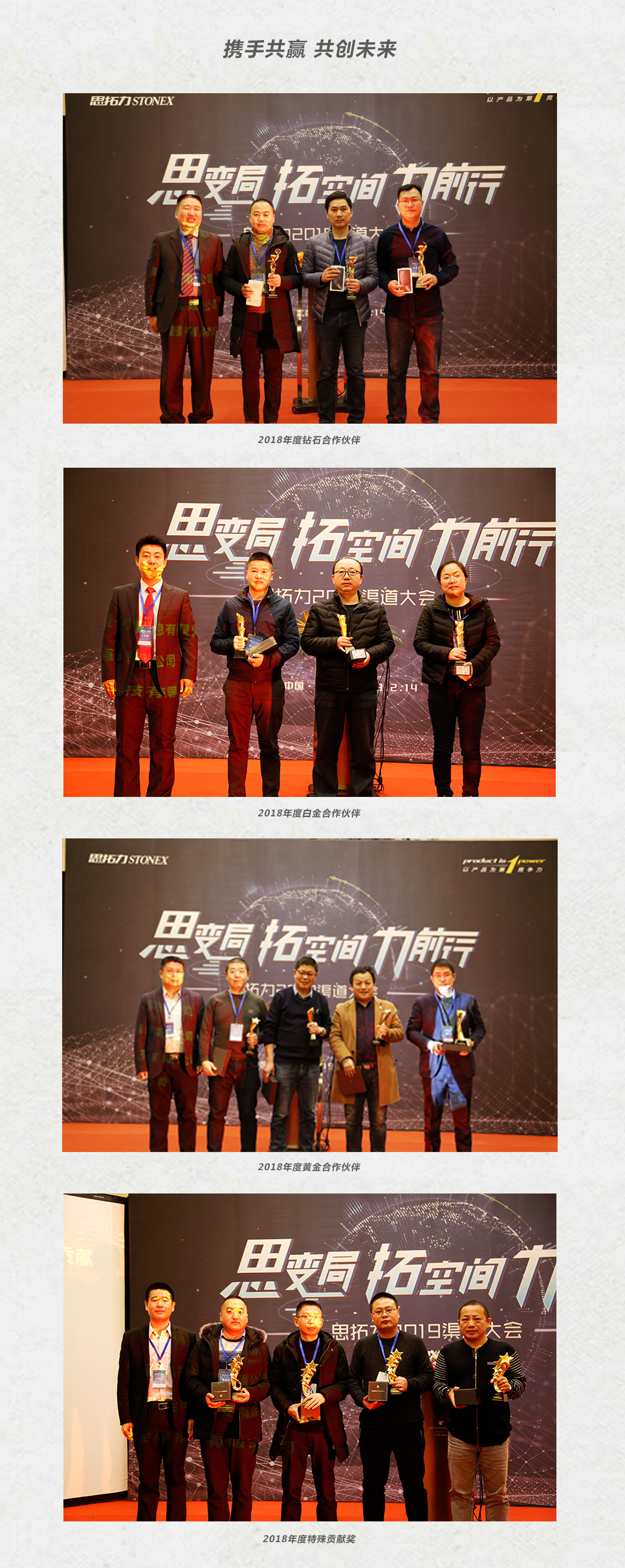 此次渠道大会上,还对荣获思拓力2018年度钻石合作伙伴、白金合作伙伴、黄金合作伙伴以及特殊贡献奖的优秀合作伙伴进行了表彰。