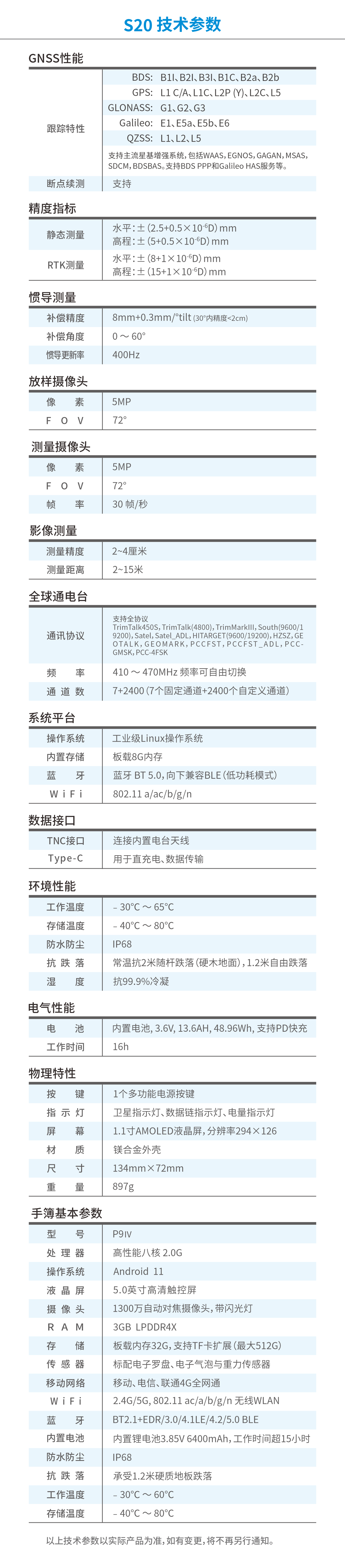 S20 是一款融合了惯导、视频和测量RTK的全功能GNSS接收机,搭载了高性能、高精度卫星定位板卡,支持全星座全频点GNSS信号处理;支持窄带抗干扰技术,自动实现电离层优化,满足复杂环境的测量需求;RTK与影像结合,实景放样,一步到位;新增的视频测量功能,有效延伸点位坐标,拓展作业范围;预装第四代惯导倾斜测量技术,扛杆即测,实现行走放样。